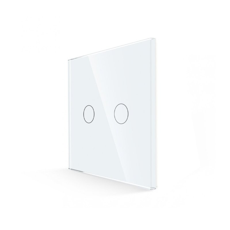 Grūdinto stiklo sensorinis dvipolis jungiklio dangtelis Feelspot FSSD2W gali būti komplektuojamas su bet kuriuo jungikliu, rozete ir kitais lizdais.