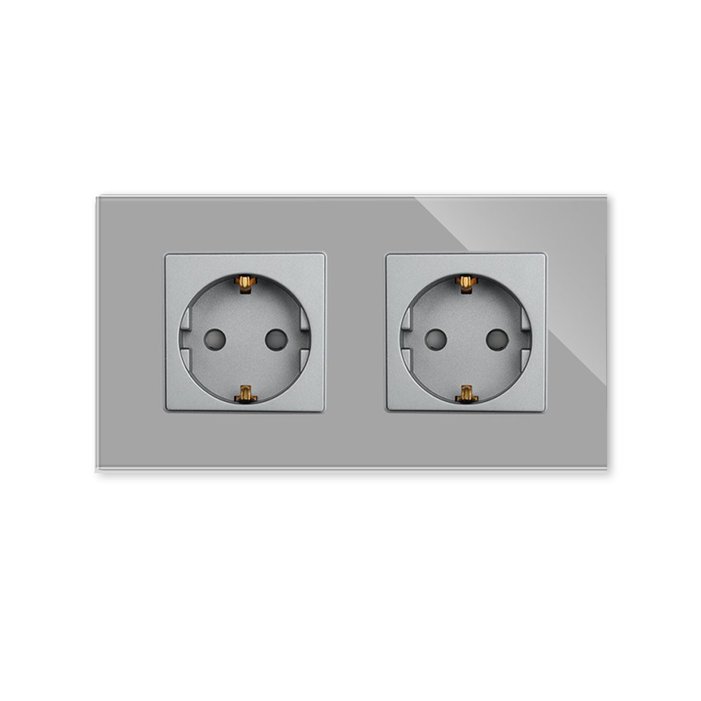 Dvivietis kištukinis lizdas su stikliniu rėmeliu Feelspot, pilkas