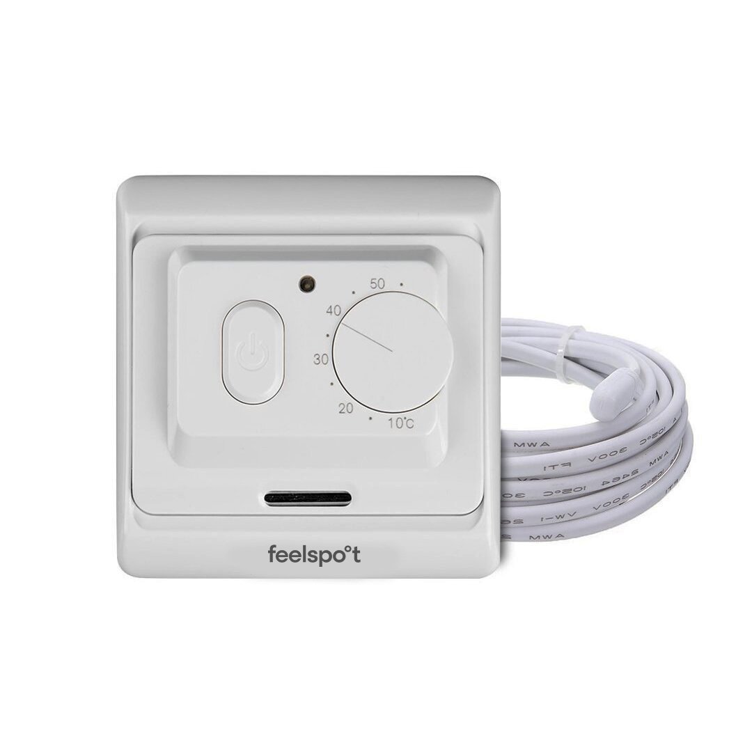 <p style="text-align: justify;">Elektromechaninis <strong>neprogramuojamas termostatas</strong> (termoreguliatorius) Feelspot WTH71.36 skirtas šildomų grindų ir patalpų temperatūros reguliavimui. <strong>Neprogramuojamas termostatas </strong>Feelspot WTH71.36 pasižymi patogiu valdymu – pageidaujamą temperatūrą galite nusistatyti rankiniu būdu mygtukų pagalba. <strong>Neprogramuojamas termostatas</strong> Feelspot WTH71.36 pritaikytas šildymo įrangai (sistemoms), jį galima naudoti kartu su integruotu oro temperatūros jutikliu arba grindyse montuojamu jutikliu, kuris padeda pasiekti puikų komfortą sunaudojant kuo mažiau energijos. Termostatą Feelspot WTH71.36 galima montuoti ir ant sienos, ir po tinku, priklausomai nuo namų ar biuro interjero dizaino, o nedegaus plastiko paviršius garantuoja įrenginio ilgalaikiškumą. <strong>Neprogramuojamas termostatas</strong> Feelspot WTH71.36 – ieškantiems kokybės ir paprastumo.</p>