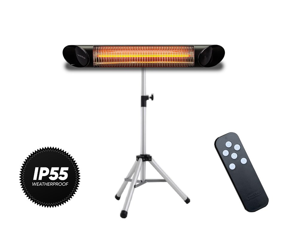 Veito BLADE S yra itin šiuolaikiškos išvaizdos pakabinami šildytuvas, tiekiami kartu su tvirtinimo laikikliais ir stovu. Thanks to its modern design and small dimensions, Veito BLADE S is suitable for small spaces indoors and can be used outdoors - on terraces, in gazebos, under a roof (in any weather). Using the periscopic remote control, the heater can be controlled from a sufficiently large distance.