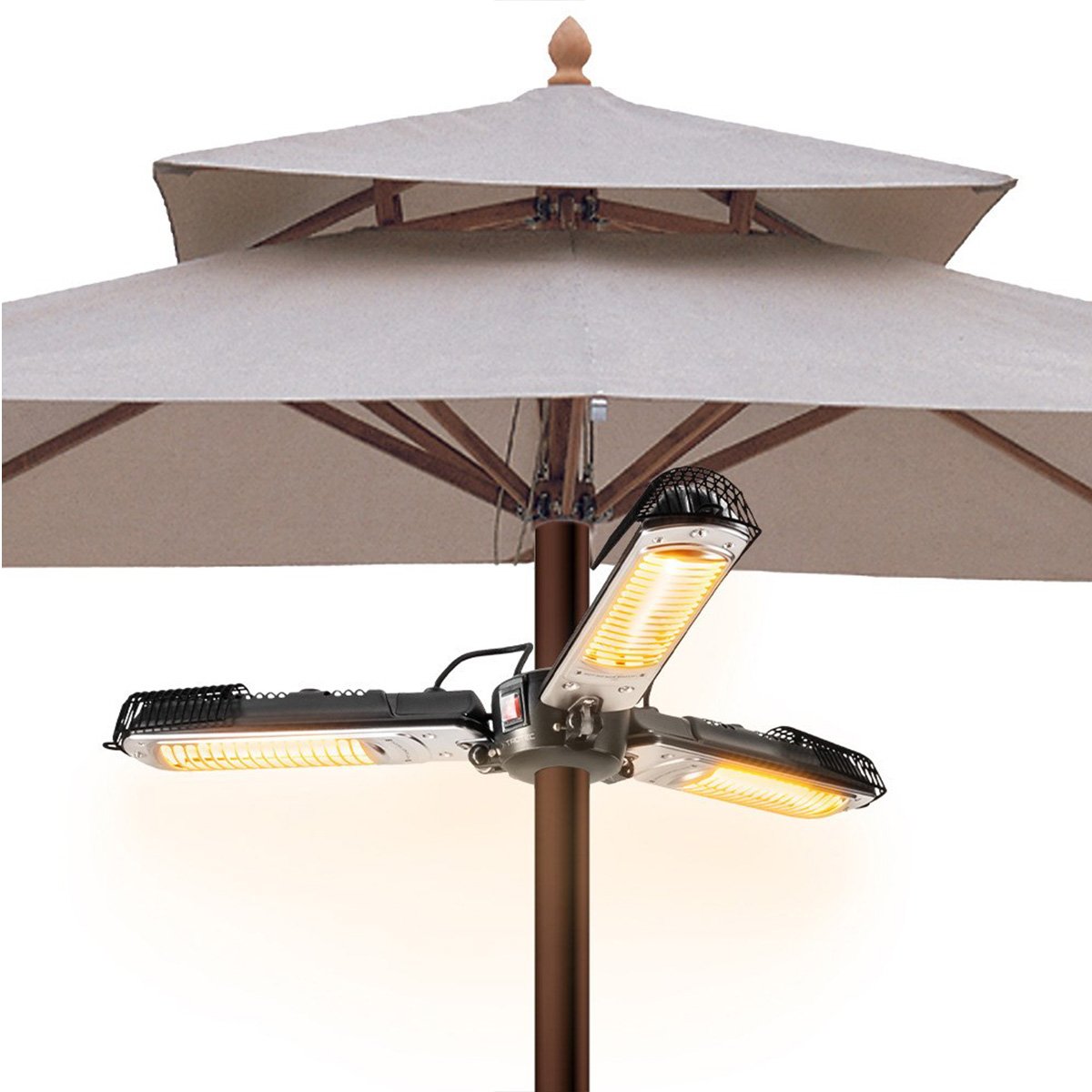 Halogeninis infraraudonųjų spindulių šildytuvas Trotec Umbrella IR 2005 SC – protingai suprojektuotas 3 sparnų spindulinis šildytuvas specialiai sukurtas nesudėtingam tvirtinimui po beveik bet kokiu lauko skėčiu, kad sode, lauko restoranuose ir baruose, lauko renginiuose ir mugėse suteiktų malonią šilumą neužimdamas papildomos vietos.