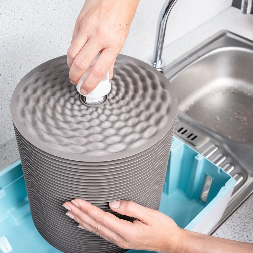 <p style="text-align: justify;">Ne tik valdymas, bet ir priežiūra yra ypač patogi. Kadangi prietaisas yra itin patogaus dizaino, visi komponentai yra lengvai prieinami. Praktinė detalė: Tinkamas valymui šepetys, skirtas valyti drėkintuvo diskus yra visada lengvai pasiekiamas šoniniame skyriuje.</p>