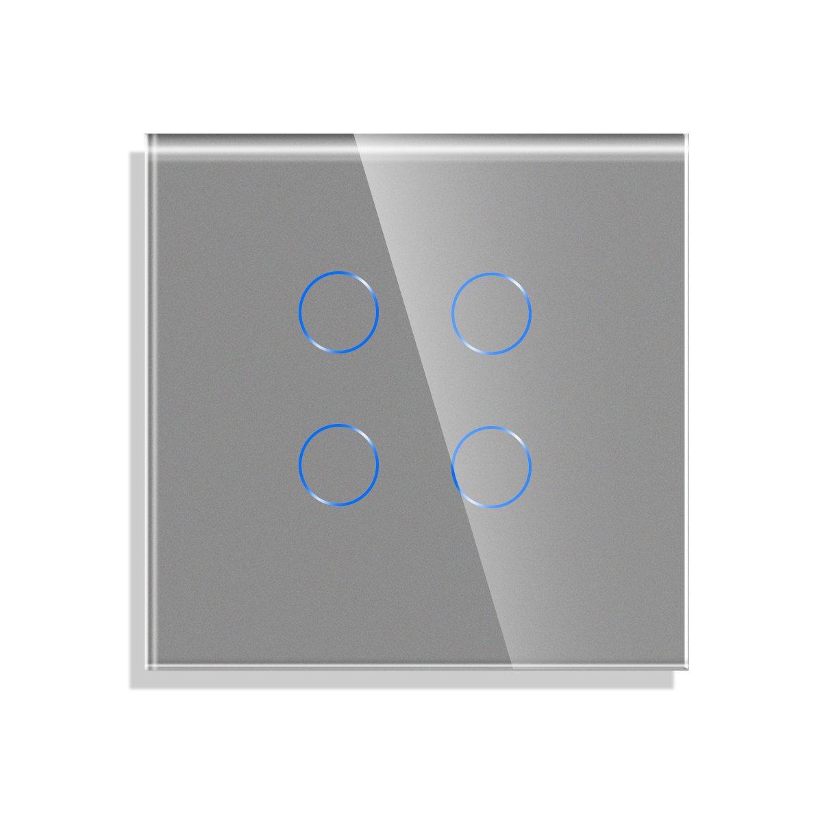 Pilkos spalvos stiklinis 500 W sensorinis keturpolis jungiklis Feelspot (komplektas). Pilkos spalvos stiklinis sensorinis keturpolis jungiklis pagamintas iš grūdinto stiklo, yra atsparus vandeniui ir ugniai. Aukštos kokybės prietaisas leis mėgautis patogiu valdymu bei paprasta priežiūra. Su modernaus dizaino jungikliu vienu prisilietimu galėsite valdyti apšvietimą patalpoje tada, kada labiausiai to reikia. Keturpolis sensorinis jungiklis Feelspot turi įmontuotą LED indikatorių, kuris rodo kada šviesa yra įjungta/išjungta, o tai padės lengvai rasti jungiklį tamsoje. Paprasto valdymo ir patikimo veikimo keturpolis sensorinis jungiklis Feelspot įgyvendins įvairiausius techninius ir interjero dizaino sprendimus, atitinkančius išrankiausio kliento poreikius.
