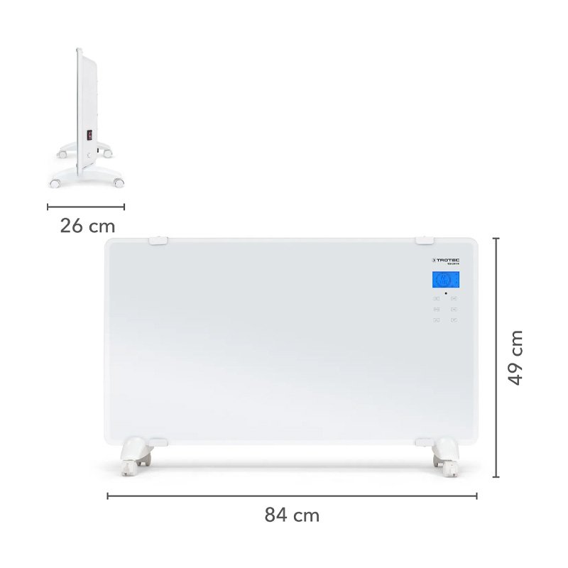 Stilingas convection heater Trotec TCH 2010 E sukurs šiltą ir malonią aplinką Jūsų namuose. Šildytuvo priekinis paviršius pagamintas iš apsauginio stiklo – nejautrus įbrėžimams ir labai lengvai valomas. Convection heater Trotec TCH 2010 E idealiai tinka patalpoms iki 24 m²/60 m³: miegamajame, vonioje, svetainėje, laisvalaikio zonoje ir net biure.