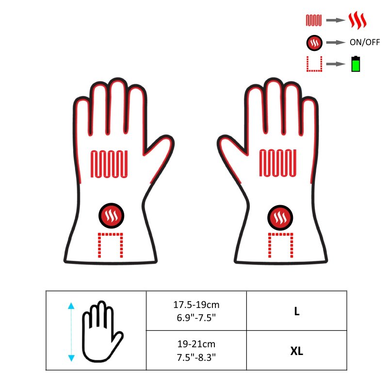 Šildomos pirštinės Glovii GS1 turi 8W šildymo elementą, pagamintą iš anglies pluošto, todėl infraraudonųjų spindulių bangos Jūsų rankoms užtikrins malonią šilumą, patikimą naudojimą ir ilgaamžiškumą, o efektyvi 2100 mAh Li-Poly baterija leis šiluma mėgautis net iki 6h! Šildymo elementas pirštinėje išsidėstęs aplink visus pirštus ir ties plaštaka, kas maksimaliai užtikrina šilumą rankose. Šildomos pirštinės Glovii GS1 turi specialią akumuliatoriaus užsegamą kišenėlę, kuri leidžia greitai ir patogiai nustatyti vieną iš trijų skirtingų šilumos lygių (LO, MED, HI).