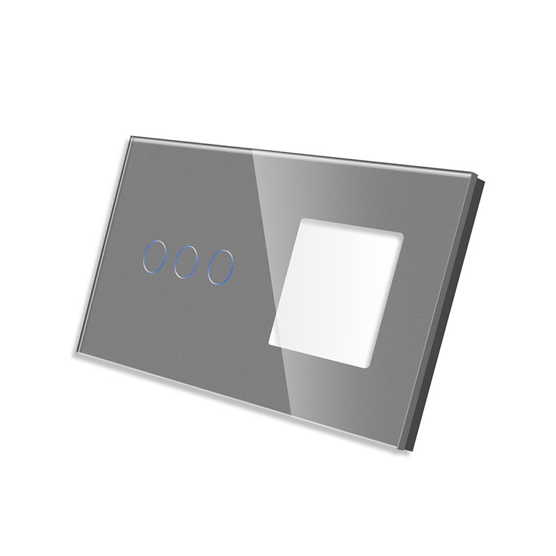 <li>Pilkas <strong>tripolis sensorinis dangtelis</strong> su vienviečiu rėmeliu (matmenys 157 × 86 mm);</li>