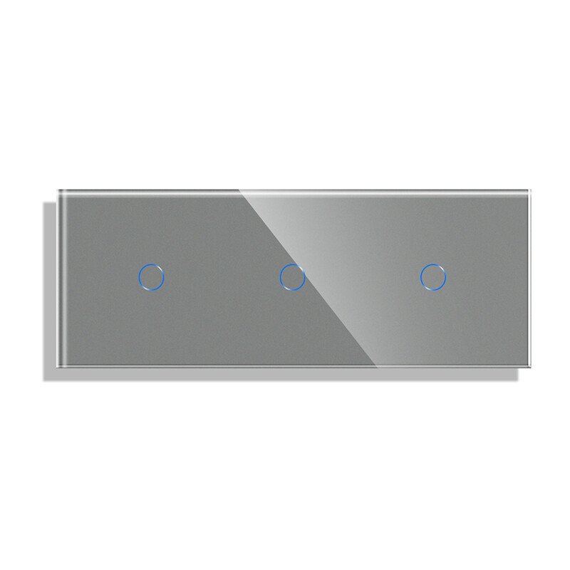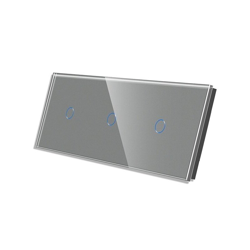 Grūdinto stiklo sensorinis trivietis vienpolis jungiklio dangtelis Feelspot FSSD3111G gali būti komplektuojamas su bet kuriuo jungikliu, rozete ir kitais lizdais.