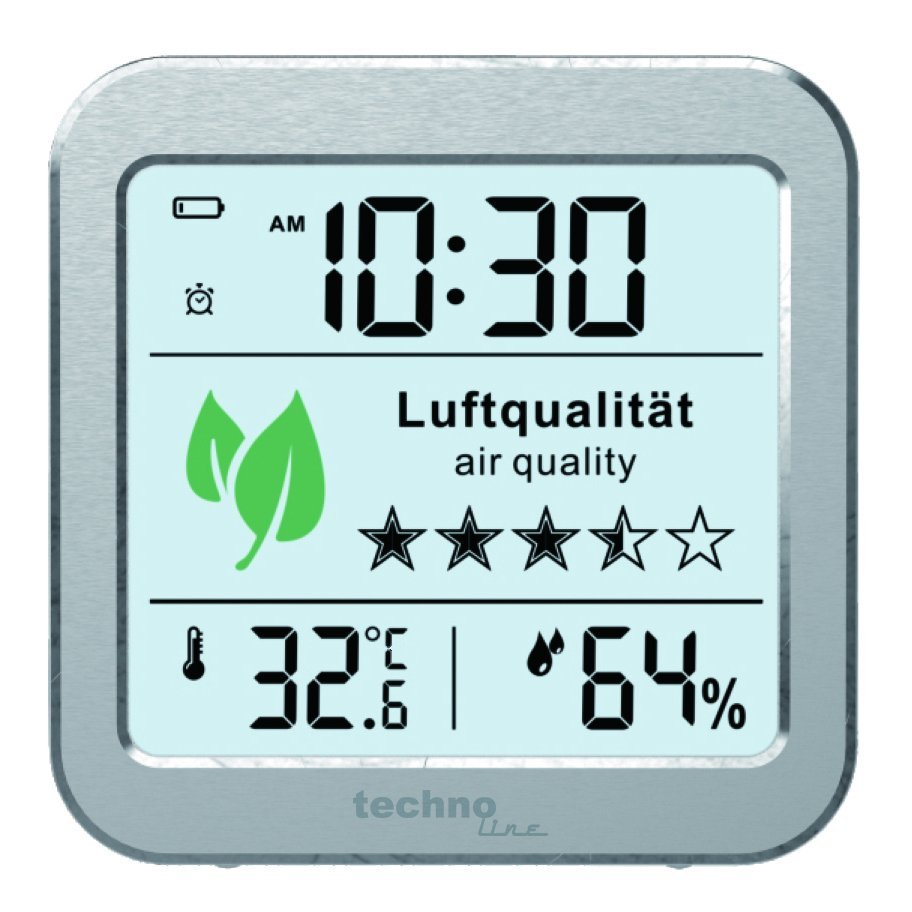 The Technoline WL1020 weather station is designed to measure indoor temperature, humidity level and air quality. The built-in air quality sensor monitors the room climate around the clock, analyzes CO2 concentration and reminds you of the need to ventilate the room at the right moment. This innovative product is perfect for use at home or in the office.