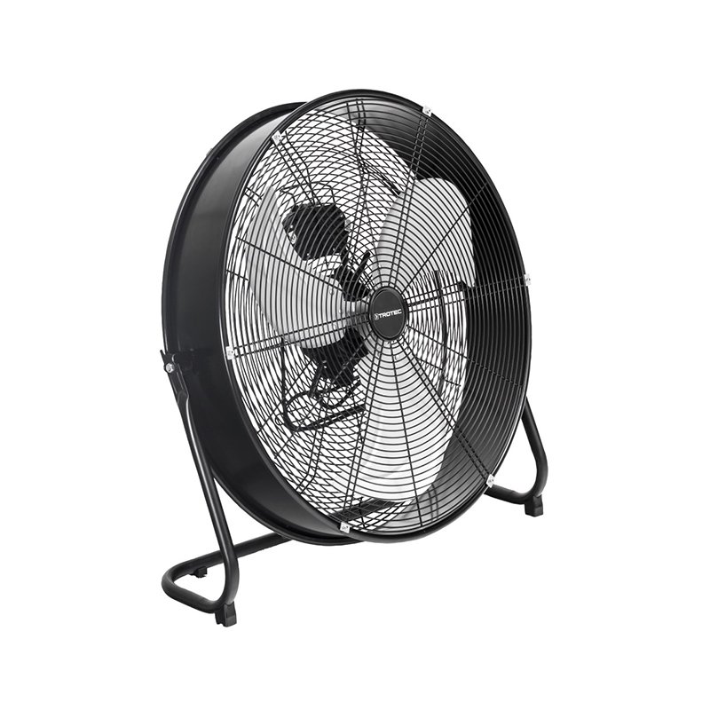Grindinis ventiliatorius Trotec TVM 24 D – industrinio stiliaus, juodos matinės spalvos ventiliatorius, pagamintas iš patvaraus metalo. Su trimis greičio nustatymais grindinis ventiliatorius yra puikiai paruoštas kiekvienam įsivaizduojamam vėdinimo scenarijui: gali būti naudojamas tiek švelniai vėsinančio oro srauto, tiek stipraus vėjo nustatymui. Ventiliatorių galima pakreipti iki 135° aplink savo horizontalią ašį, kad oro srautas visada patektų būtent ten, kur norisi.