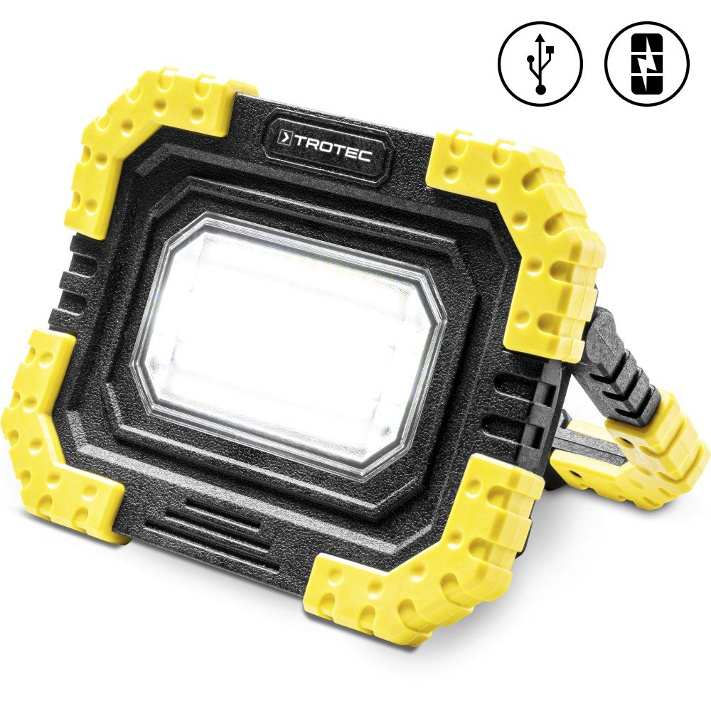 Dėka apsaugos klasės IP44, šis universalus LED prožektorius puikiai tarnaus ne tik atliekant įvairius automobilių, patalpų remonto ar buities darbus, kur nėra pakankamo apšvietimo, bet ir laisvalaikiu: stovyklaujant, naktinės žūklės metu, naktiniame žygyje ar kita. LED prožektorius Trotec PWLS 06-10 turi įmontuotą akumuliatorių, kuris įkraunamas per USB įkrovimo laidą ir įkroviklį.