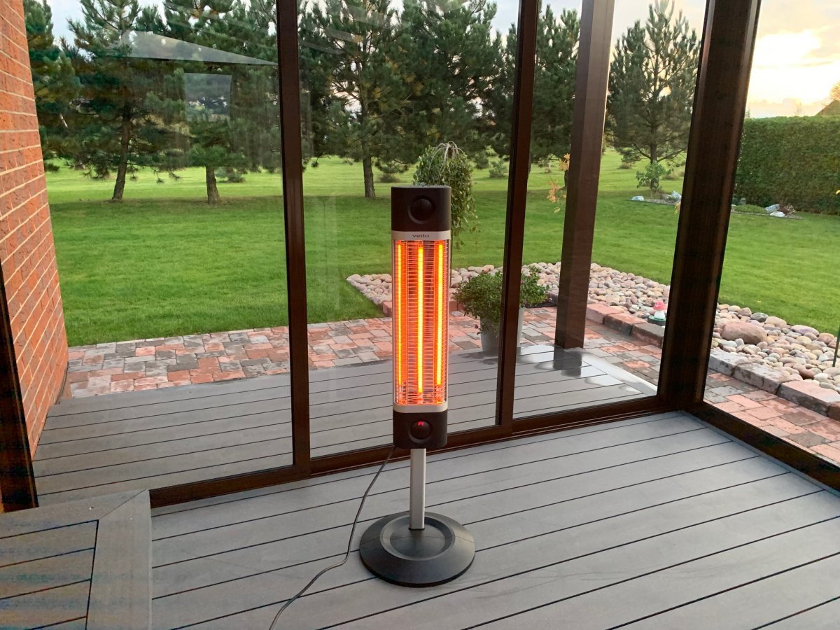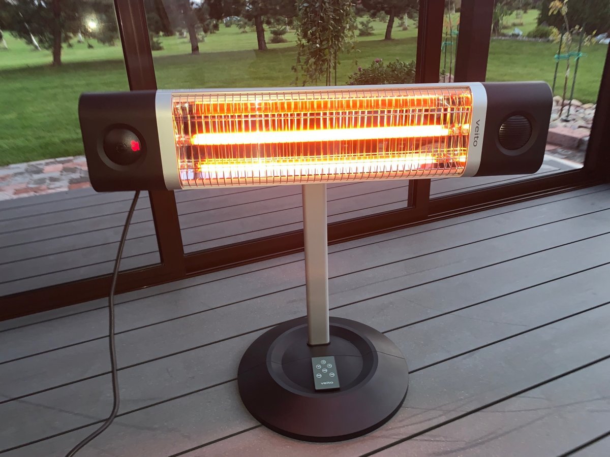 Šis pastatomas šildytuvas yra su reguliuojamo aukščio stovu (820mm-1350mm) ir turi keturis temperatūros nustatymo lygius. Veito CH1800 RE tiekiamas kartu su nuotoliniu valdymo pulteliu, kurio dėka galima automatiškai reguliuoti energijos suvartojimą (priklausomai nuo pasirinktos temperatūros) ir eliminuoti nepageidajamus karščio-šalčio ciklus.