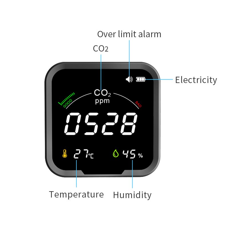 <li>CO2 matuoklis ir oro kokybės indikatorius.</li>