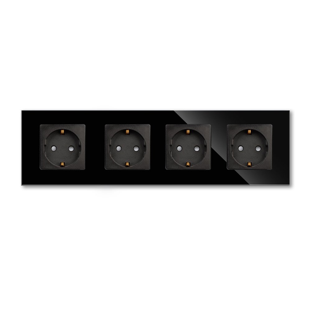 Keturvietis kištukinis lizdas su stikliniu rėmeliu Feelspot, juodas