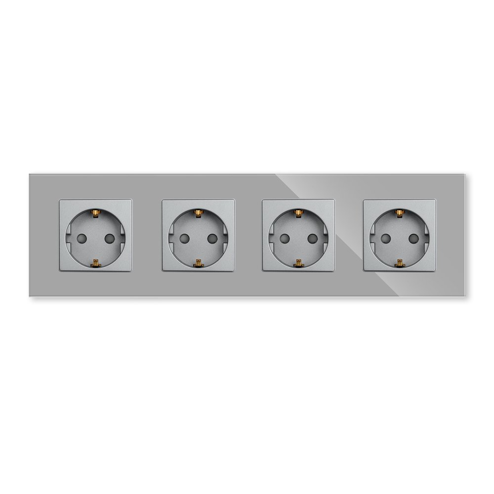 Keturvietis kištukinis lizdas su stikliniu rėmeliu Feelspot, pilkas