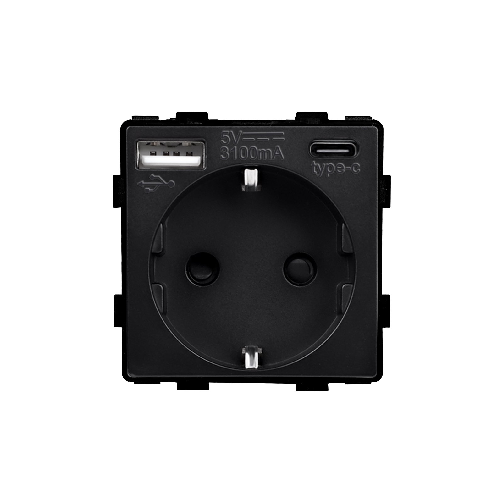 Juodos spalvos kištukinis lizdas Feelspot FSKL1USB1CB su USB+C jungtimis (be dangtelio). Kištukinis lizdas pasižymi išskirtiniu moderniu dizainu, o pasirinktas rėmelis tiks bet kuriame interjero dizaine. Baltos spalvos kištukinis lizdas Feelspot yra įžemintas, turi apsaugą nuo vaikų bei yra pritaikytas naudoti pagal Europinį standartą.