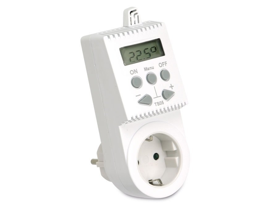 <p style="text-align: justify;"><strong>Kištukinis neprogramuojamas termostatas </strong>(termoreguliatorius) TS05 yra <strong>kištukinis termostatas</strong>, kuriuo lengva valdyti elektrinių šildymo sistemų (infraraudonųjų spindulių, tiesioginio šildymo prietaisų, rankšluosčių džiovyklių) nustatymus Jūsų namuose arba biure. <strong>Kištukinis neprogramuojamas termostatas</strong> TS05 pasižymi patogiu naudojimu, kadangi prietaisą galėsite naudoti ten, kur labiausiai to reikia: vonioje, virtuvėje, miegamajame ar net koridoriuje. <strong>Kištukinis neprogramuojamas termostatas</strong> (termoreguliatorius) TS05 leis mėgautis universaliu naudojimu ir nuolatine švara – dėl kištukinio įrenginio tipo, jo nereikės įleidinėti ar kitaip įmontuoti į sieną. Tad šį termostatą galėsite naudoti su neribotu skaičiumi šildymo įrenginių! <strong>Kištukinis neprogramuojamas termostatas</strong> (termoreguliatorius) TS05 turi mygtukus, kurių dėka galėsite valdyti nuolatinį šildymo tiekimą ir valdyti temperatūrą.</p>