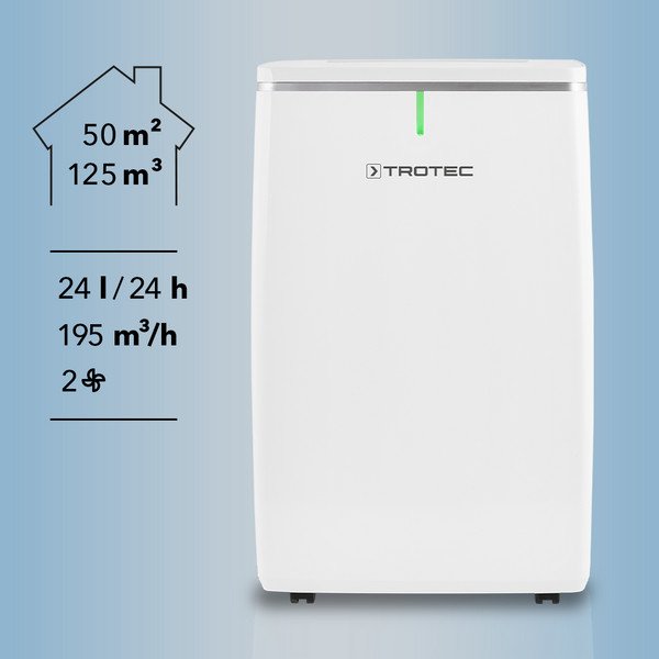 Modernaus dizaino kondensacinis oro sausintuvas – drėgmės surinkėjas Trotec TTK 72 E tinkamas naudoti gyvenamosiose, dušo ar rūsio patalpose, skalbyklose, vasarnamiuose, sandėliuose ir kt., kurių dydis 50 m². Per dieną iš aplinkos gali surinkti iki 24 litrų drėgmės, kas užtikrins komfortišką naudojimąsi įrenginiu.
