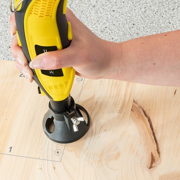 • Padėties nustatymo įtaisas su gylio skale tiksliam gręžimui ir griovelių frezavimui;