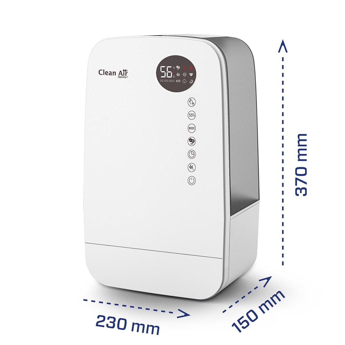 Oro drėkintuvo CleanAir CA-607W Smart priekyje esančiame aiškiai išdėstytame skaitmeniniame valdymo skydelyje yra septyni jutikliniai mygtukai, kuriais lengva pasirinkti norimus nustatymus. Taip pat, šis išmanusis įrenginys turi nuotolinio valdymo pultelį ir valdymą naudojant programėlę Clean Air Optima App®.