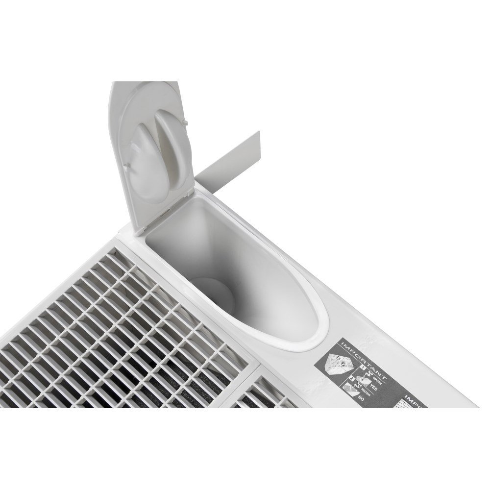 <p style="text-align: justify;"><span>Higrostatu kontroliuojamas diskinis drėkintuvas nukreipia įtrauktą orą per besisukantį drėkinimo būgną, kuris juda vandens pripildytoje talpoje. </span><strong>Informaciją apie drėkintuvo vandens indo pildymą rasite naudojimo instrukcijoje 7 psl.</strong></p>