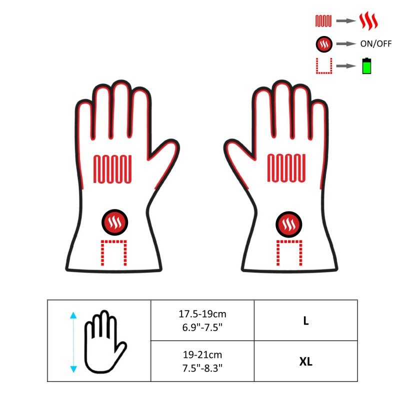 Šildomos pirštinės Glovii GS3 8W šildymo elementas pagamintas iš anglies pluošto, todėl infraraudonųjų spindulių bangos Jūsų rankoms užtikrins malonią šilumą, patikimą naudojimą ir ilgaamžiškumą, o efektyvi 2100 mAh Li-Poly baterija leis šiluma mėgautis net iki 6h! Šildymo elementas pirštinėje išsidėstęs aplink visus pirštus ir ties plaštaka, kas maksimaliai užtikrins šilumą rankose. Šildomos pirštinės Glovii GS3 turi specialią akumuliatoriaus užsegamą kišenėlę, kuri leidžia greitai ir patogiai nustatyti vieną iš trijų skirtingų šilumos lygių (LO, MED, HI).