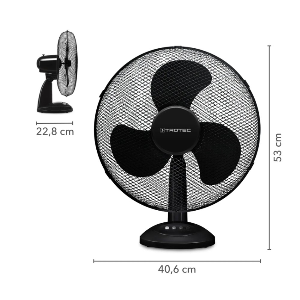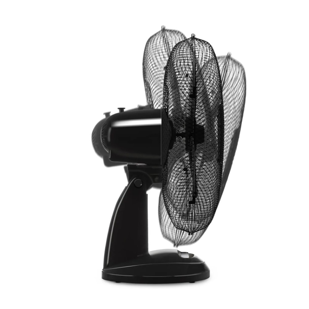 Kai vasarą pakyla temperatūra, stalinis ventiliatorius TVE 18, kurio sparno skersmuo yra 40 cm, užtikrina galingą vėją ir vėsinimą. Vizualiai kompaktiškas stalinis ventiliatorius išsiskiria aiškiu ir madingu juodos spalvos dizainu. Dar viena praktiška savybė – integruota rankena, skirta greitai pakeisti vietą.
