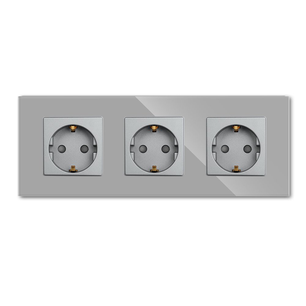 Trivietis kištukinis lizdas su stikliniu rėmeliu Feelspot, pilka