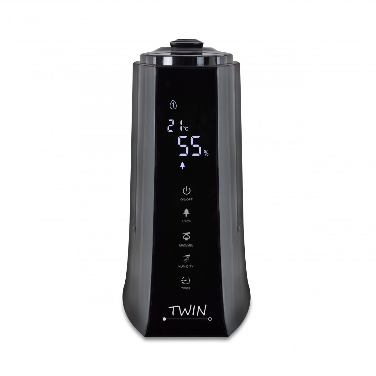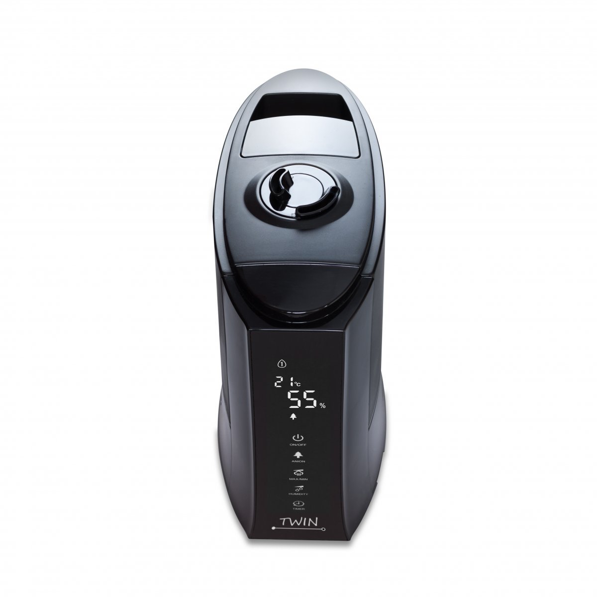 <p style="text-align: justify;">Įrenginyje yra įmontuotas skaitmeninis drėgmėmatis ir termometras. Ultragarsinis <strong>oro drėkintuvas</strong> &bdquo;Airbi TWIN&ldquo; gali veikti rankiniu arba automatiniu režimu. Rankiniu režimu vartotojas gali nustatyti dulksnos pur&scaron;kimo intensyvumą (3 lygiai). Automatiniu režimu vartotojas nustato santykinės drėgmės vertę (minimalus drėgnumas 45%, maksimalus 75%), kurią norima pasiekti ir palaikyti. Įmontuotas jonizatorius, skleisdamas neigiamus deguonies jonus papildomai i&scaron;valo orą ir suteikia gaivaus oro pojūtį. Ultragarsinis<strong> oro drėkintuvas</strong> &bdquo;Airbi TWIN&ldquo; gali būti valdomas nuotolinio valdymo pultu arba mygtukais priekiniame skydelyje. &Scaron;is <strong>oro drėkintuvas</strong> turi 5 l vandens bako talpą, kuri aptarnauja patalpas iki 45 m<sup>2.</sup></p>