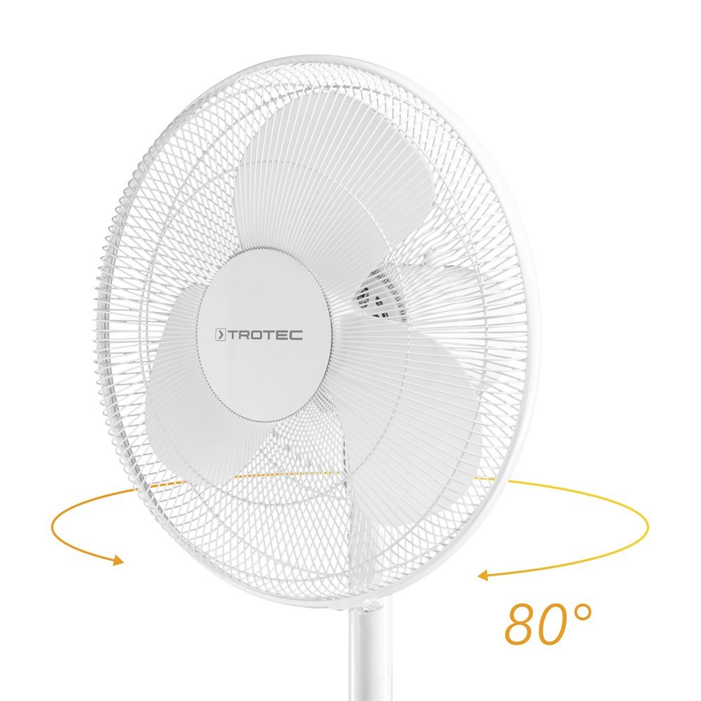 Ventiliatorius TVE 23 S turi sukamąjį jungiklį su 3 oro greičio lygiais. Norint ypač tolygiai paskirstyti oro srautą visoje patalpoje, galima įjungti integruotą svyravimą 80 laipsnių kampu. Ventiliatoriaus galvutė automatiškai sukasi iš kairės į dešinę ir užtikrina nuolatinį vėsinimą – kaip natūralus gaivus vėjas. Be to, ventiliatoriaus galvutę galima pakreipti iki 30 laipsnių aukštyn arba žemyn. Tiesiog nukreipkite oro srautą jums patogiausiu kampu. Ventiliatorius Trotec TVE 23 E  yra nepastebimai tylus net ir dirbant aukščiausiu lygiu.