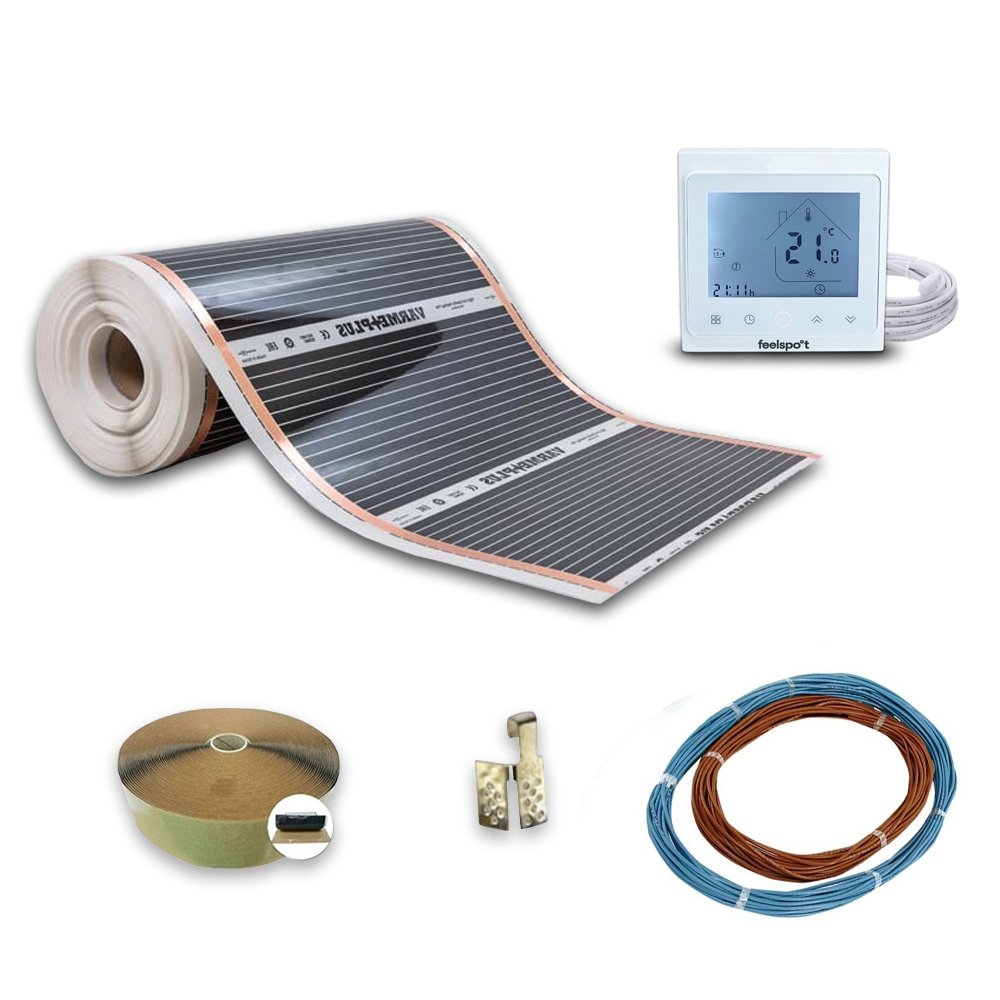 Wellmo grindinio šildymo plėvelės (1 m plotis) komplektas su termostatu